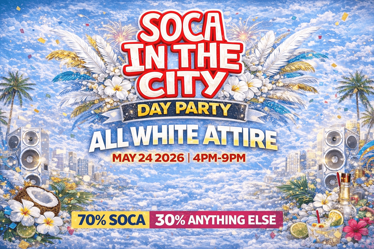 DONT MISS OUR ALL WHITE DAY PARTY. 2 FOR 1 TICKETS NOW AVAILABLE (Save $10)“BRING THE ENERGY” 70% SOCA 30% ANYTHING ELSE!